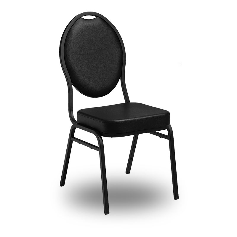 Sits och rygg är stoppad och klädd i slitstark vinyl (konstskinn). Stativet är en pulverlackerad aluminiumställning.