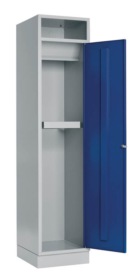 Klädbytesskåp som är utformade för efektiv och enkel hantering av kläder. Skåpet är i helsvetsat stål med plant tak och cylinderlås.