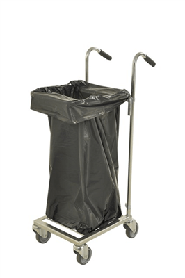 Ergonomiskt utformad sopsäcksvagn anpassad för 125L sopsäck. Fäste som håller säcken på plats. Elförzinkad Anpassad för 125L sopsäck 100mm länkhjul