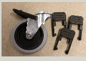 Hjul: Fyra kullagrade länkhjul med gummibana och trådskydd 125x32 mm. Det mindre bordets har glidlagrade hjul 100x25 mm.